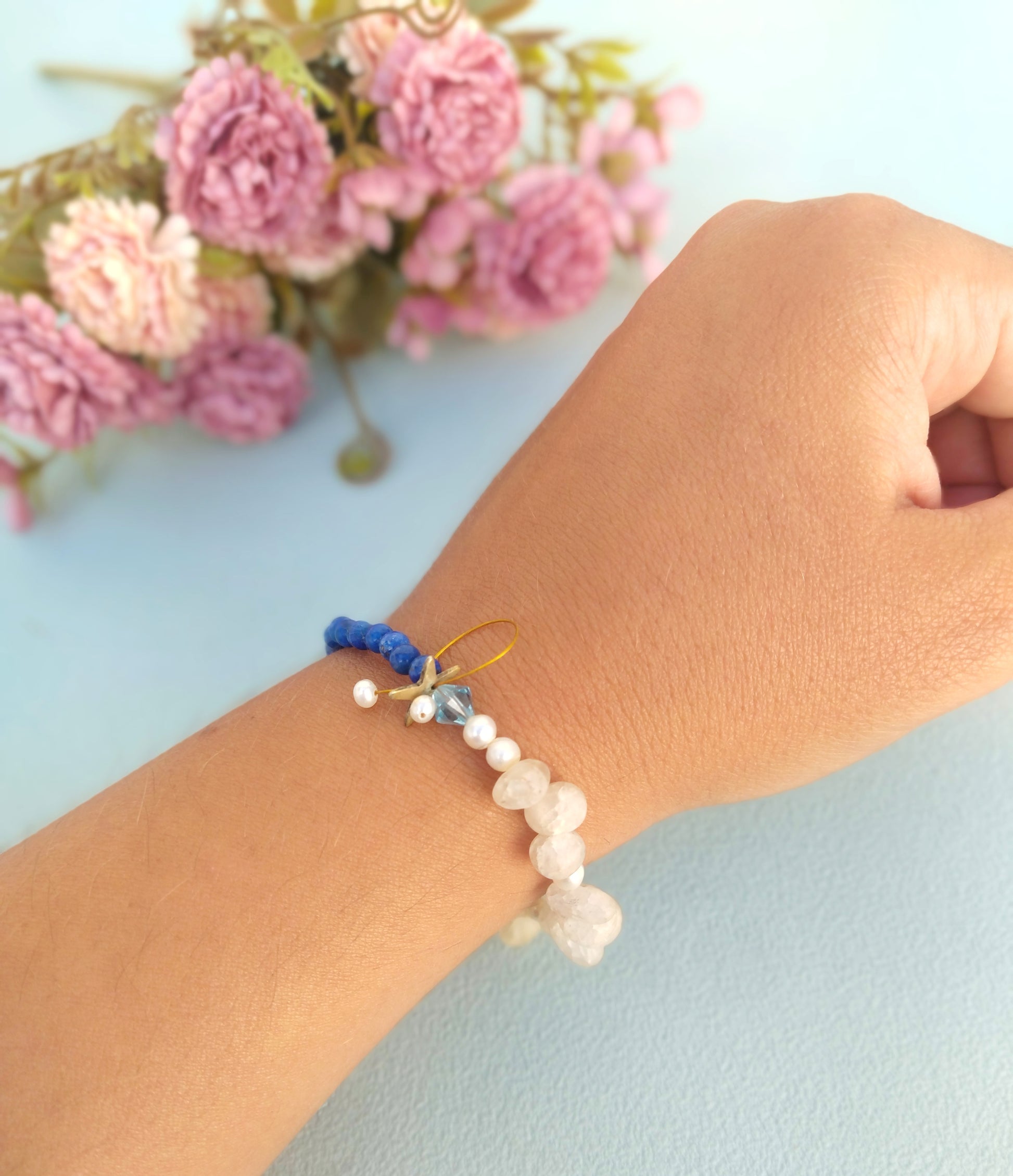 Moonstone And Lapis Lazuli Bracelet, Celestial Gemstone Bracelet
