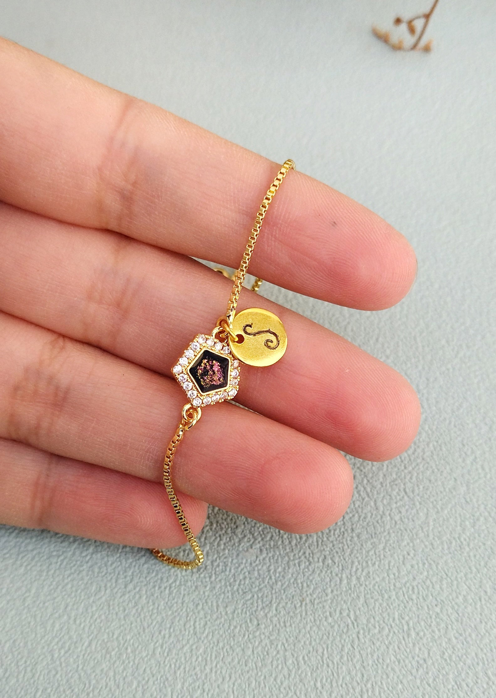 This beautiful opal bracelet is the perfect way to show your love to a special girl born in October. With its simple, elegant design, this bracelet is sure to become a much-loved piece of jewelry. Each bracelet features a glistening opal stone set in a dainty gold-plated chain and can be personalized with the initial of your choice. With a unique slide ball closure so it can adjust to many wrist sizes. An ideal Little Mermaid theme party gift! With its shimmering opal and beautiful gold setting, it is the perfect gift to celebrate the magical underwater world of mermaids...