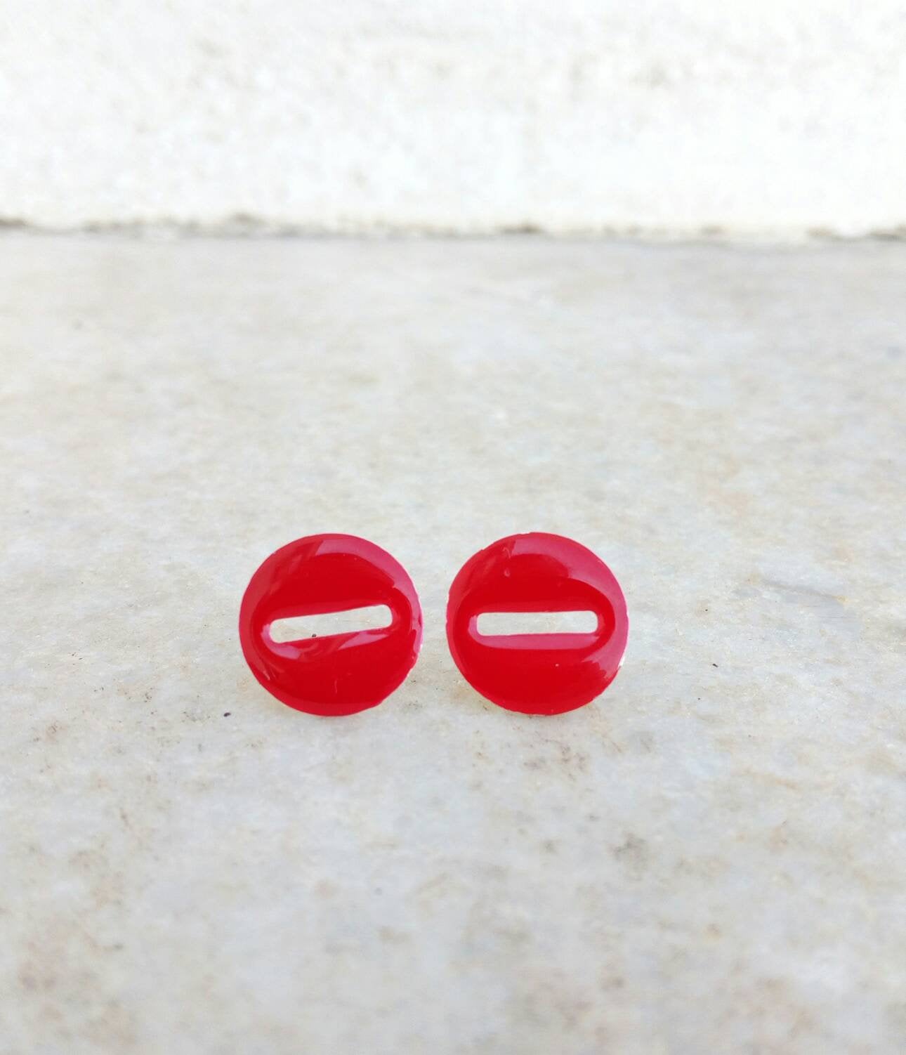 Cute red post earrings in silver plated brass. These enamel studs are modern and elegant! A pair of stop earrings, nickel, lead and cadmium free, thing that makes them hypoallergenic. The perfect new driver gift or an appreciation gift for your kids school crossing guard. It comes to you on our eco friendly wood stand. A nice layer of resin has been brushed on top of the enamel painted earring in order to protect the colors.