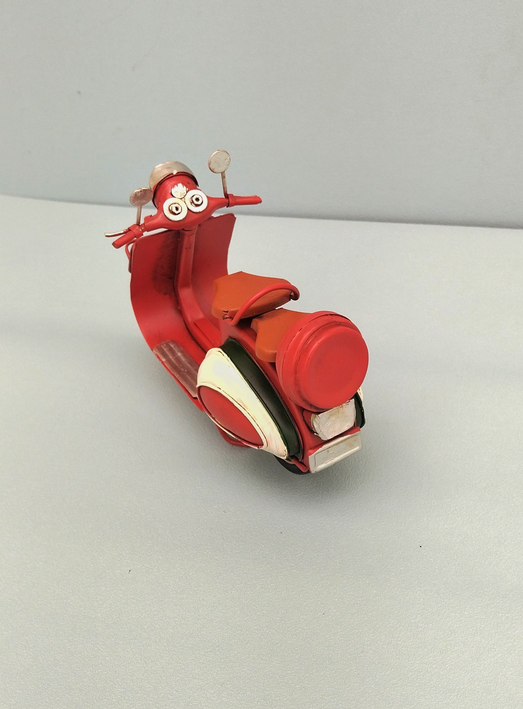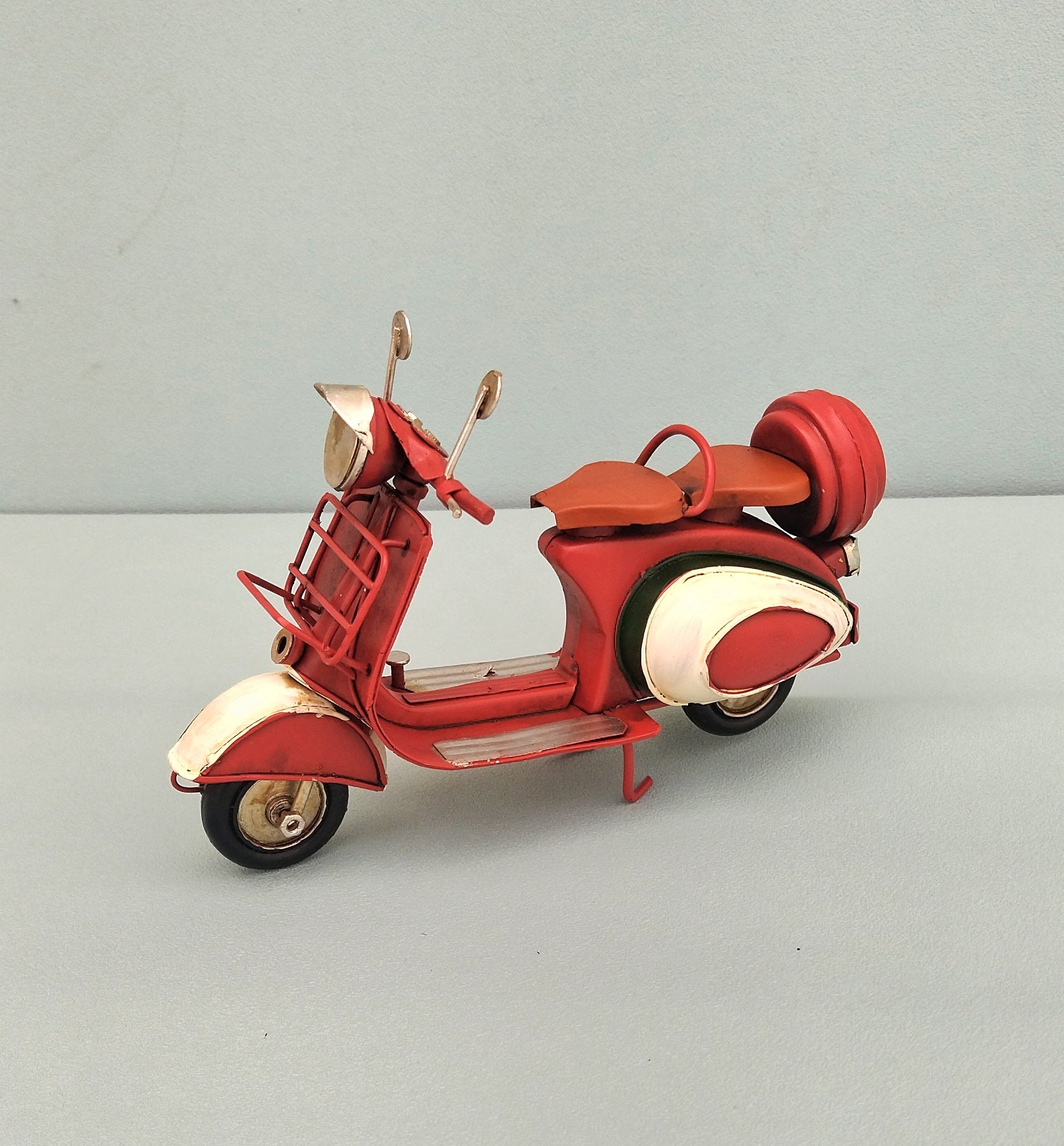 Beautiful red vespa scooter! Retro collectible motorcycle, made like 50s style design. Made entirely by hand from metal, it is the perfect garage decor! Ideal gift for biker or present for a retro toy art collector...