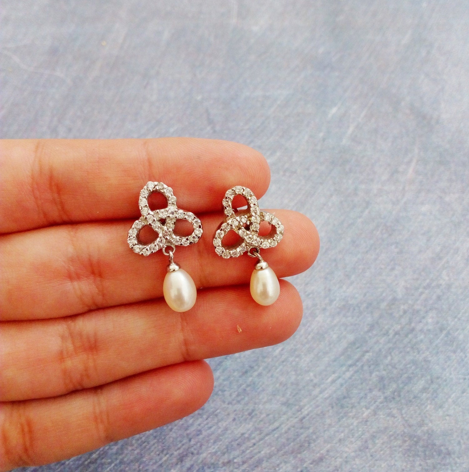 Silver Bridal Pearl Drops, Fine Silver Cz Earrings