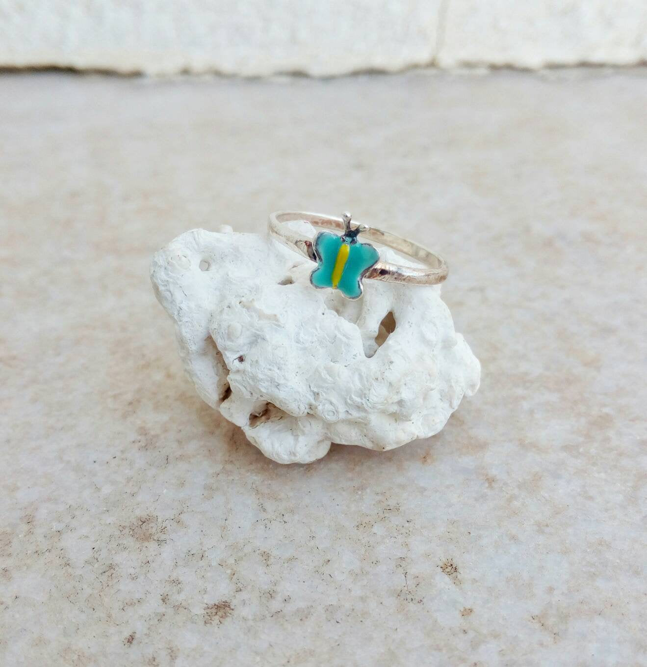 Silver butterfly ring, 925. A thin band ring made for every girl! Wear it as knuckle ring or just a little finger ring. Perfect gift idea as your little sister gift as it comes in small sizes and its awful cute!!! A thin resin layer on top in order to protect the colors...
