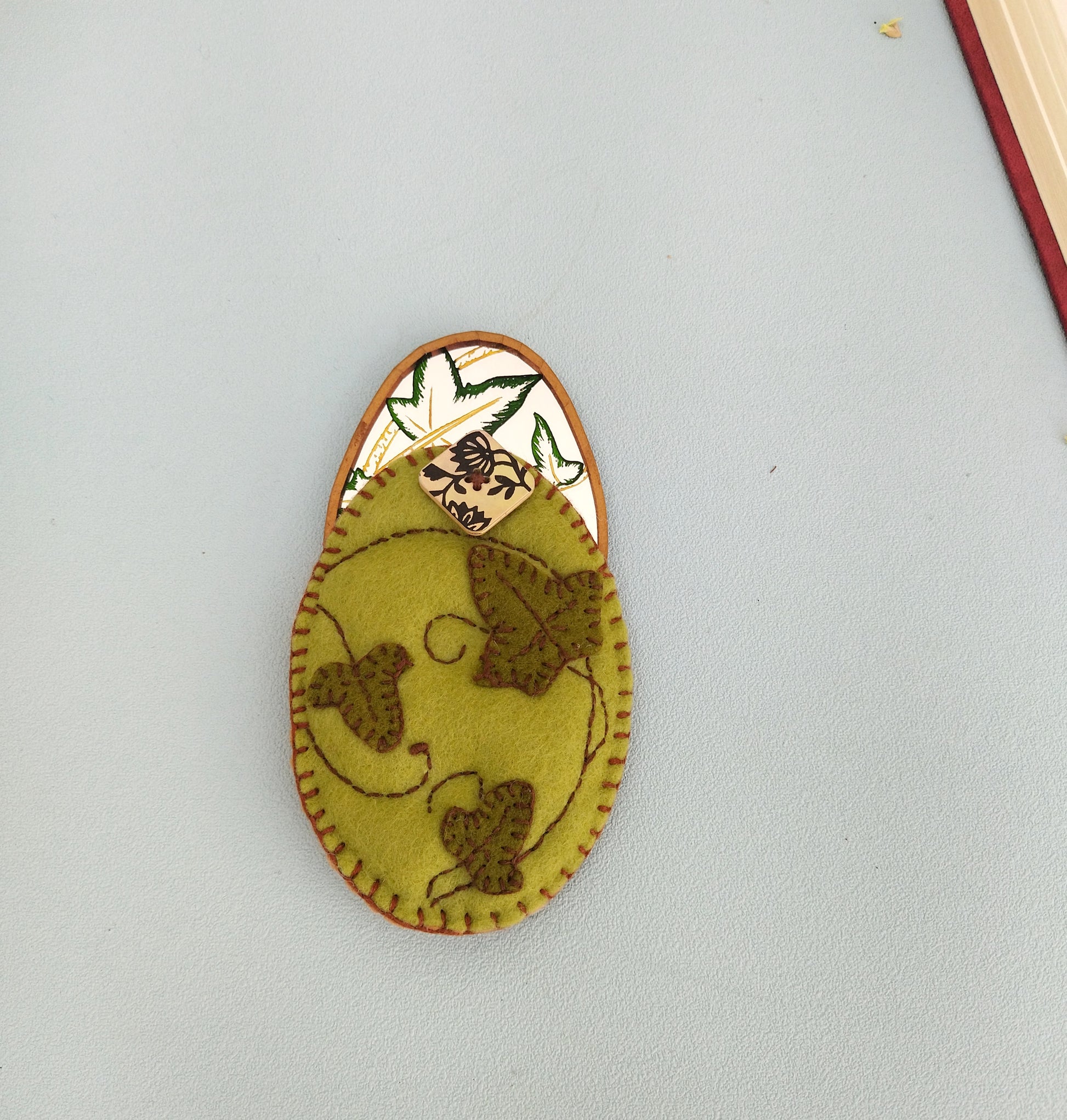 Beautifully made hand mirror with engraved and painted vine leaves. This ivy leaves mirror is made entirely by hand. A beautiful felt sleeve comes with this compact mirror in order to protect it from scratches inside your handbag.