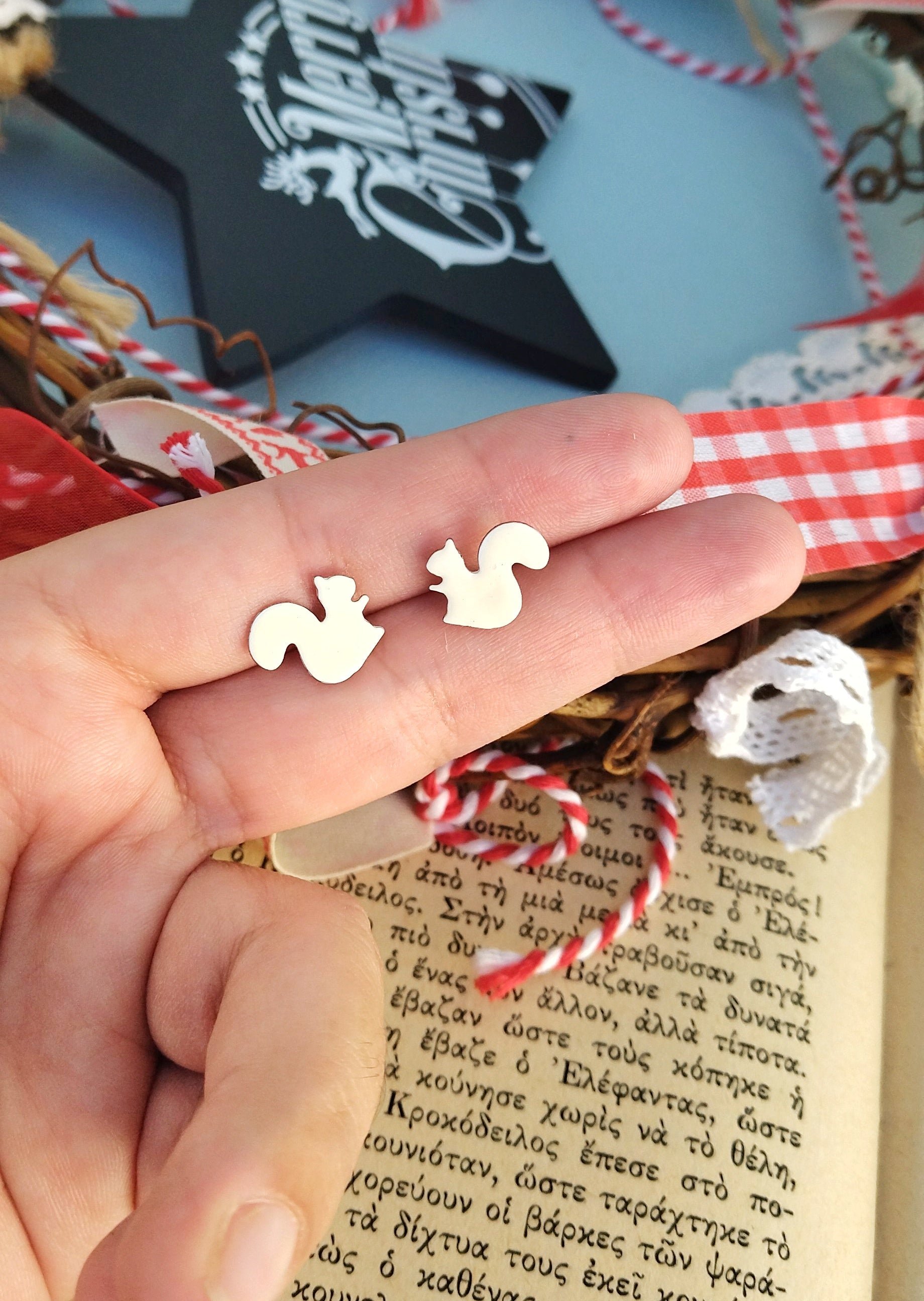 Squirrel Stud Earrings, Enchanted Forest Animals Jewelry
