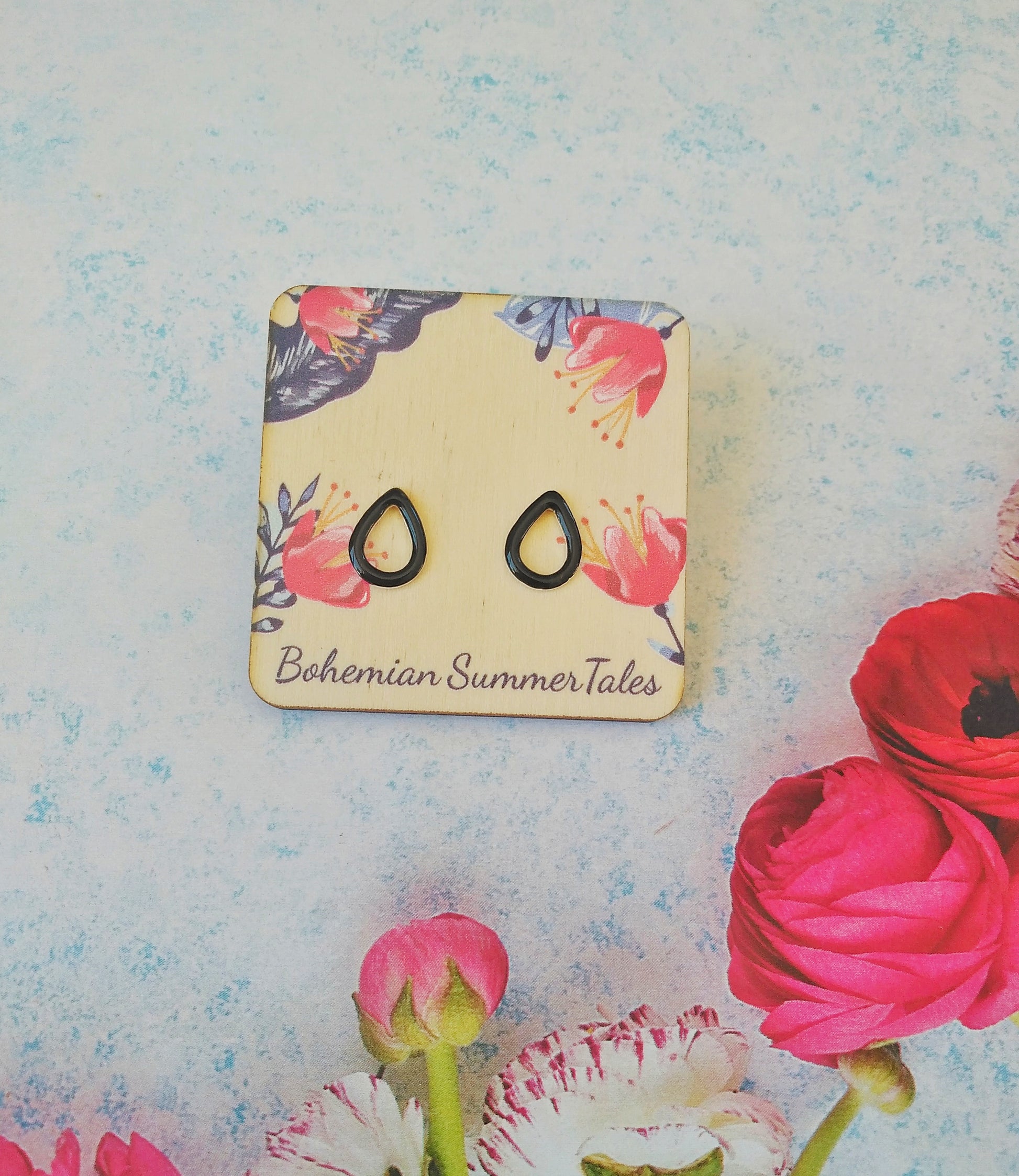 Teardrop Stud Earrings, Unisex Black Stud Earrings, Raindrop Jewellery