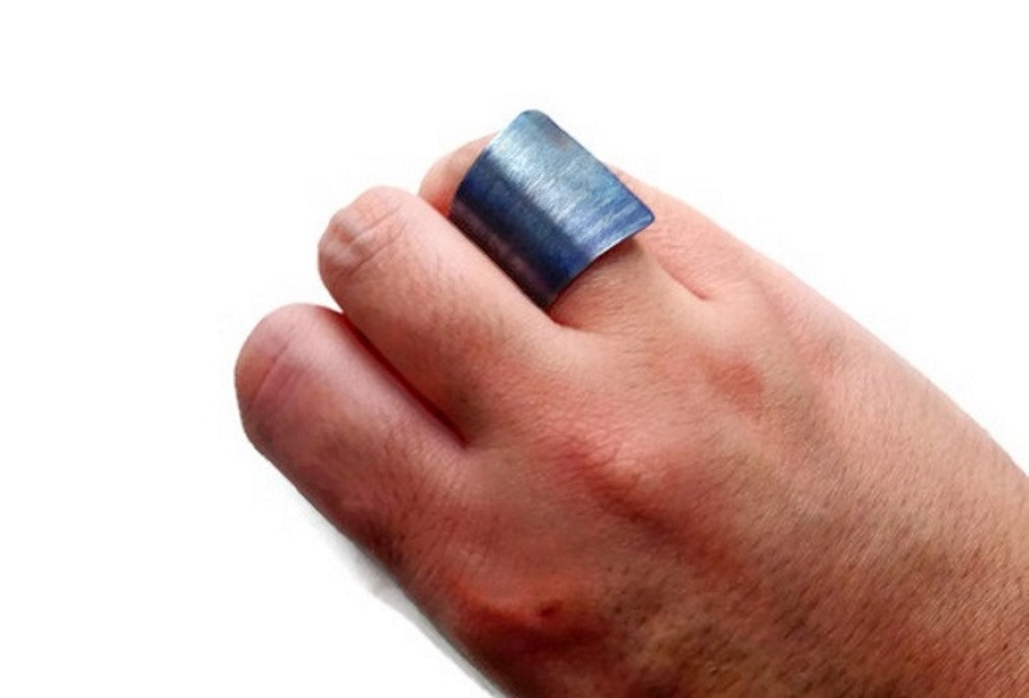 Anodized titanium ring. Do you like to wear original jewels, made just for you and are one of a kind? This stunning piece of fashion industrial jewelry is going to catch everyone's eye! The metallic blue color of the titanium is result from a fire created procedure. And the best part is that you will see no one else wearing a design like this!!! Wonderful gift idea for your best friend or your other half.