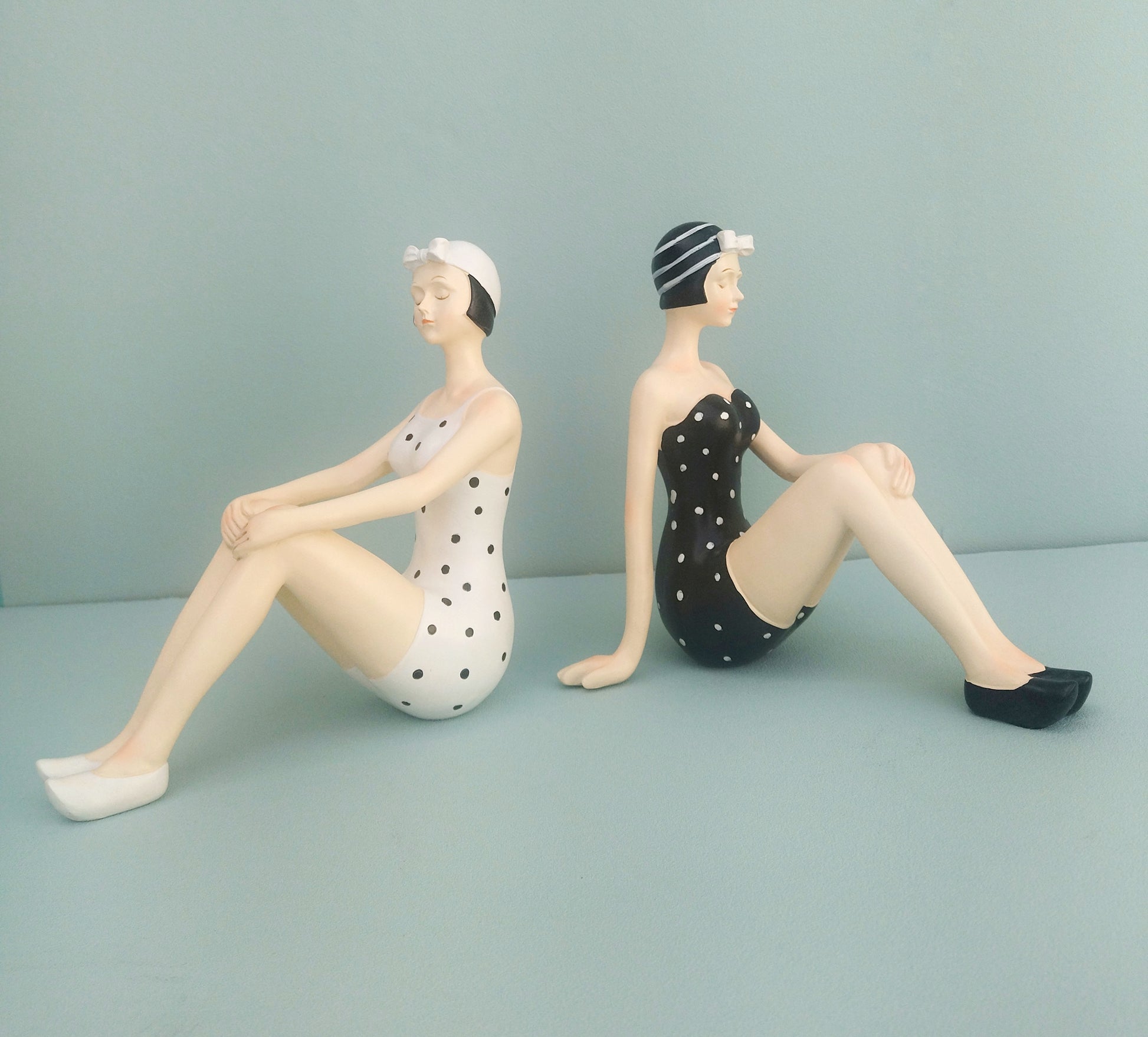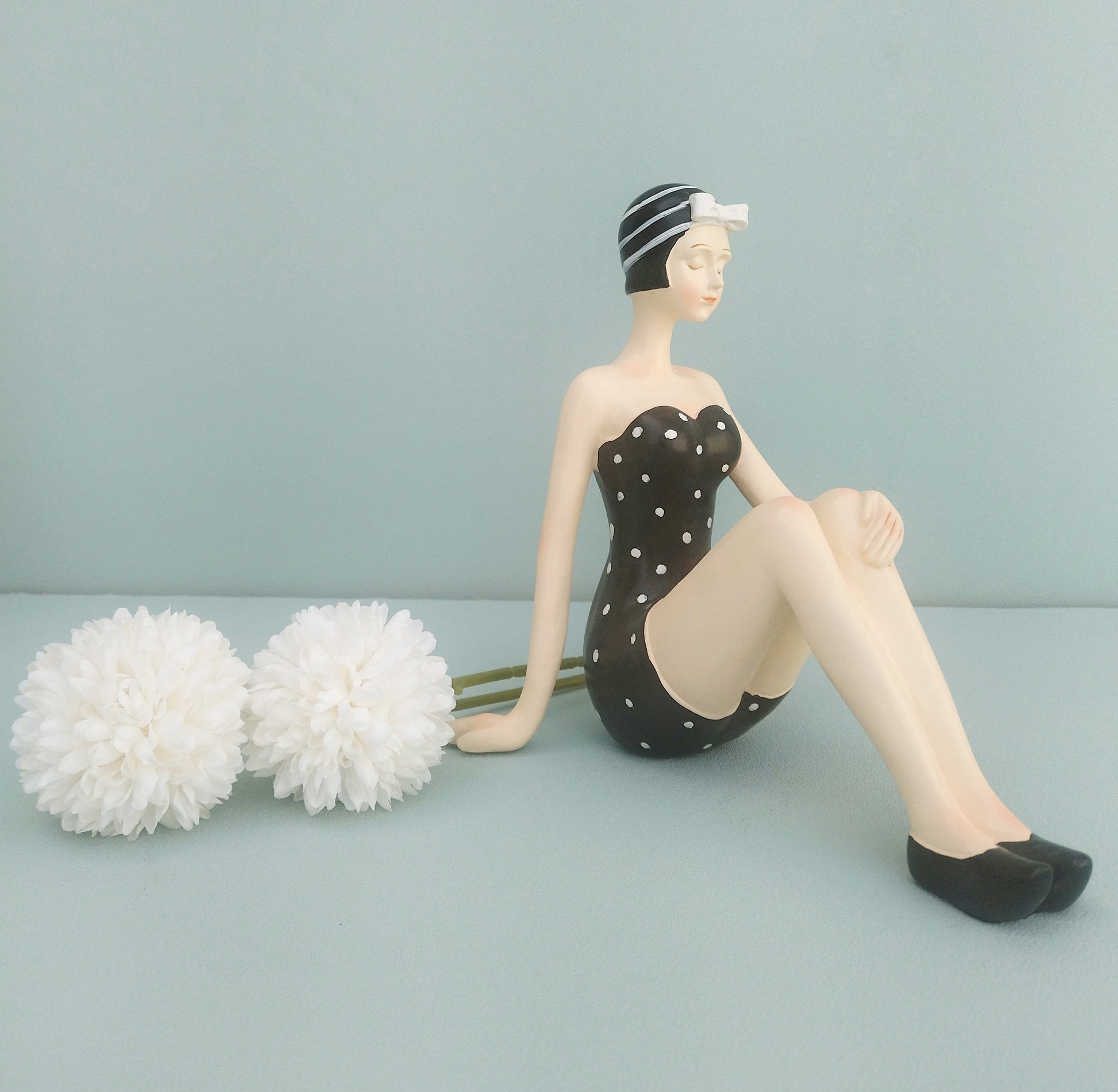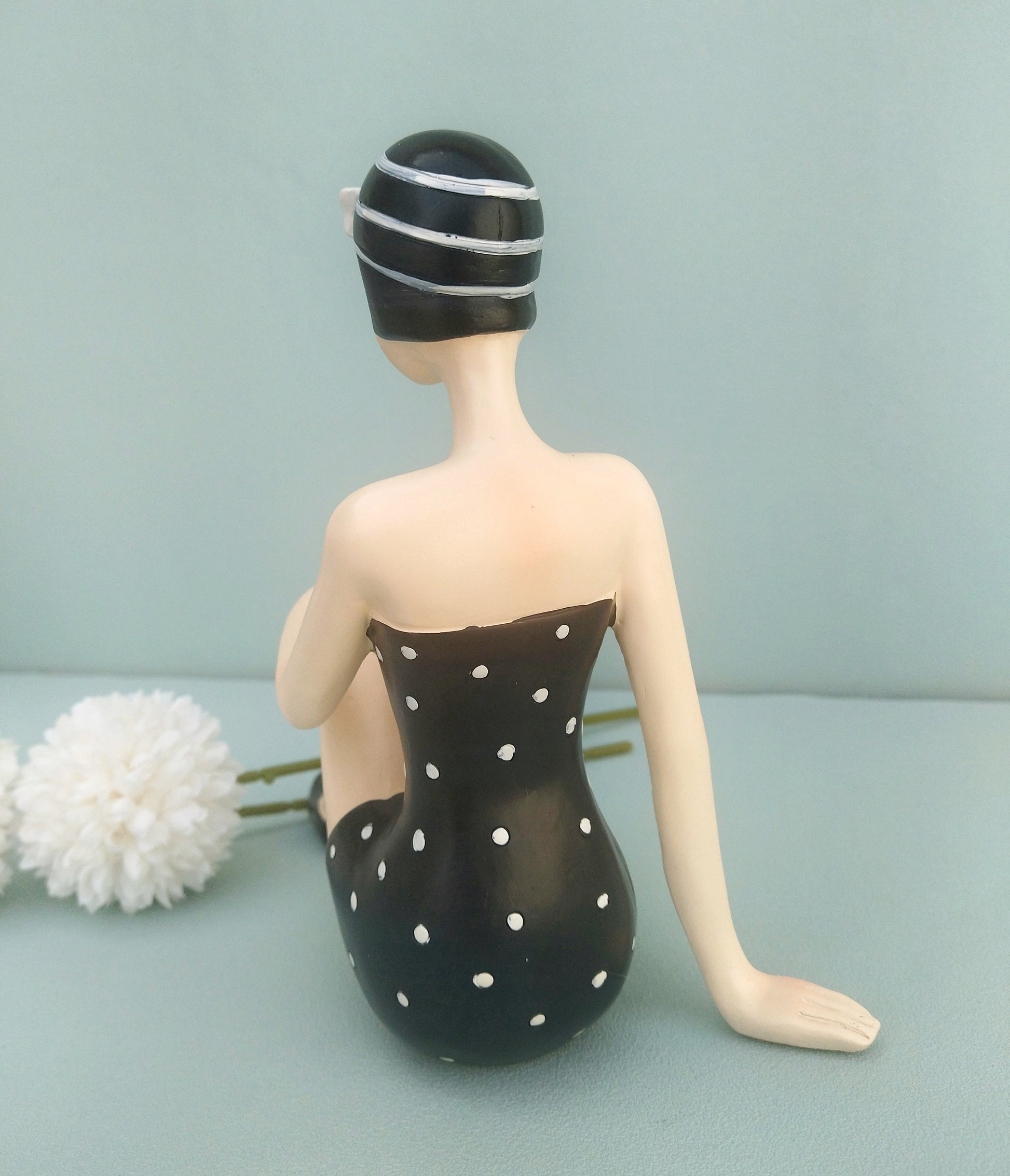 Pin up girl figurine made entirely by hand from polyester. Beautiful swimming girl in vintage swimsuit with polka dot. Nice touch in order to create the most unique retro home decor