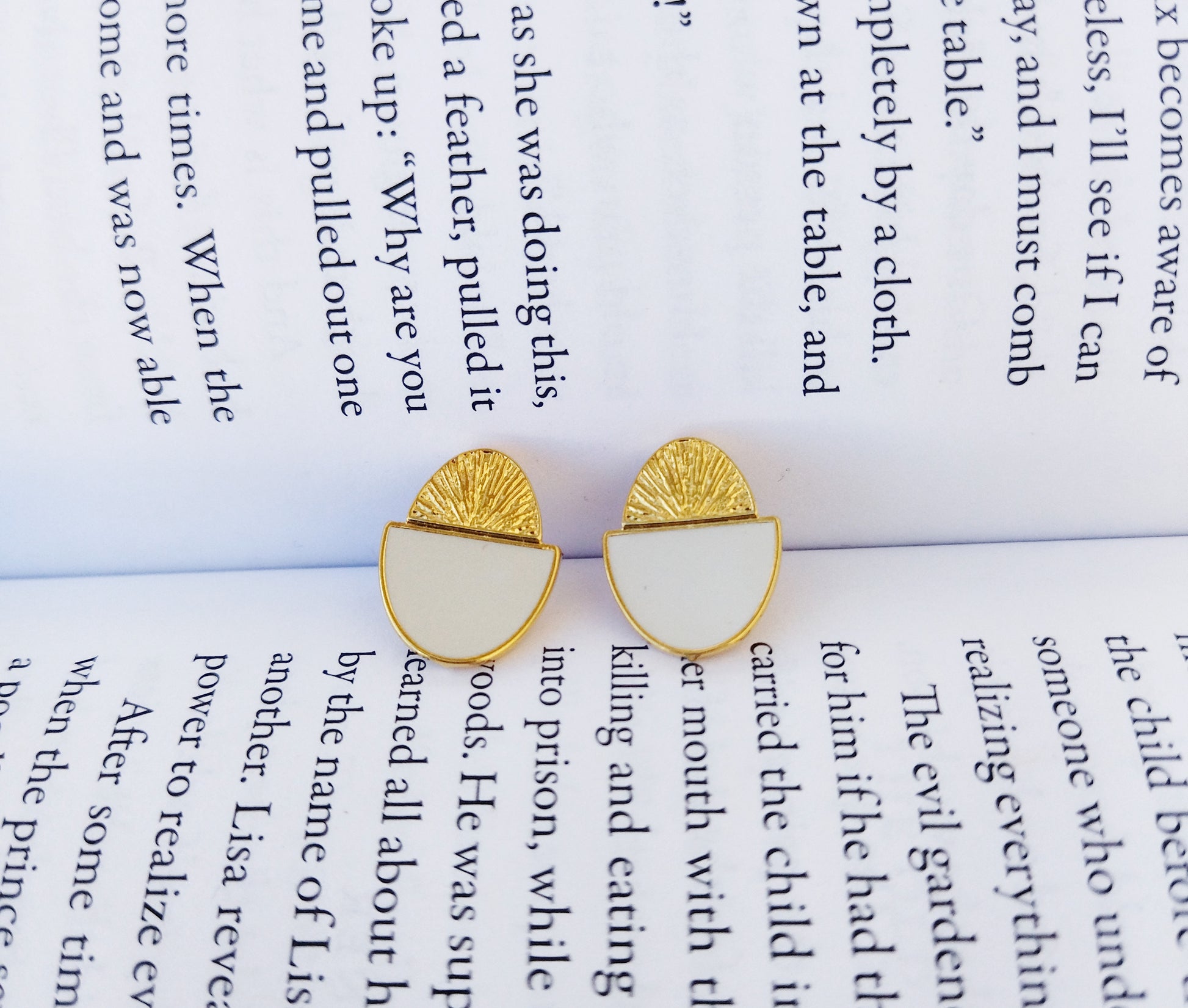 White Enamel Stud Earrings, 18K Gold Plated Bronze Oval Earrings